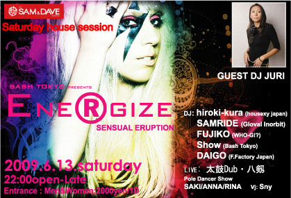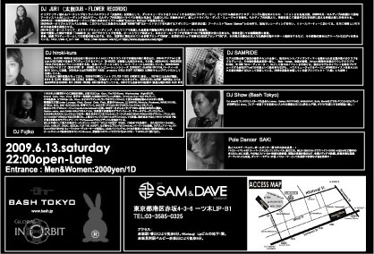 Gallery ROPPONGI, SAM&DAVE, Solfa, WombなどでのパワフルなDJプレイが好評なDJ show。