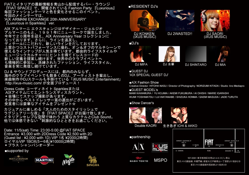 ◆Dress Code: something sparkling or Armani Exchange clothes