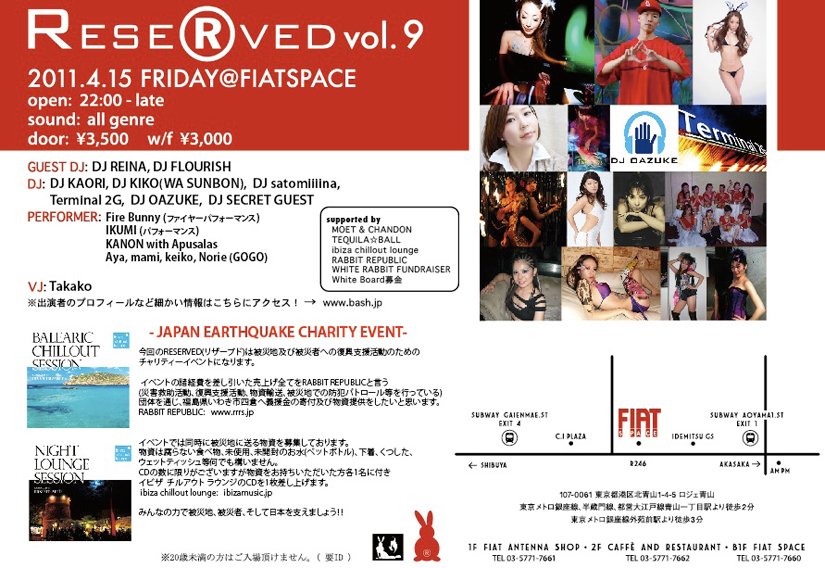 今回のRESERVED(リザーブド)は被災地及び被災者への復興支援活動のためのチャリティーイベントになります。
